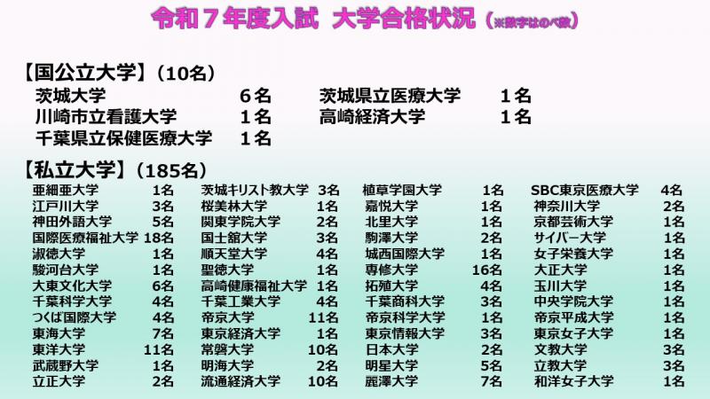R7(2025)現役生 大学合格状況