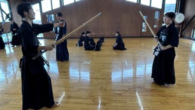 剣道部は、顧問の先生、部活指導員の先生のご指導のもと、男子七人、女子三人で日々稽古に取り組んでいます。火曜日はオフ、木曜日はトレーニング、月、水、金、土、日、祝日は基本練習を含めた稽古に励んでいます。その中で私達は切磋琢磨しながら、さらなる高みを目指して練習をしています。今年度は、三年生が引退して部員が減り、さみしいところですが、一、二年生だけでも意識の高い練習をしたおかげで、先日行われた県の勝ち抜き大会で男子団体三位女子団体2部一位という成績を残すことができました。部の雰囲気はとても活発で、男女の仲もよく、お互いに高めあえる関係です。来年の全国、関東予選で県の4強に入れるように、これからもお互いを高め励まし合いながら、個人でも団体でも力を出せるように頑張ります。