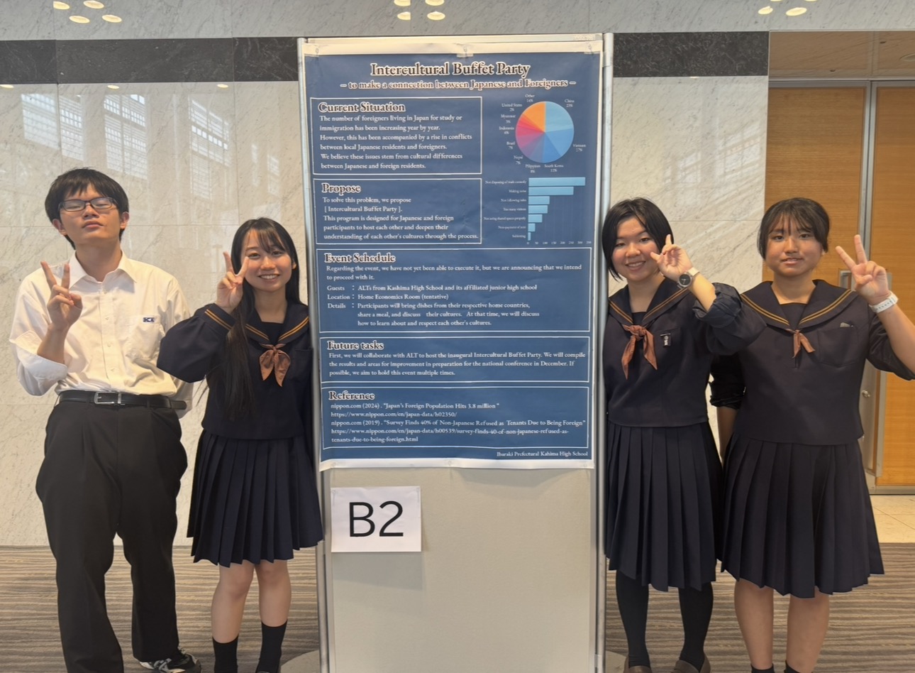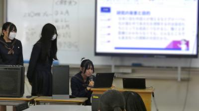2人は昨年度2月に本校で開講した吉瀬 章子 先生(筑波大学理工学群社会工学類教授)の特別授業に参加した後、夏休みに、高大連携プロジェクト合宿に参加し、大学院生のご指導のもと、探究を進めてきました。また、鹿嶋市役所の交通防災課の皆様にもお世話になり、今回の発表に至りました。