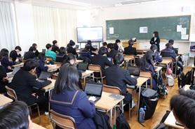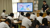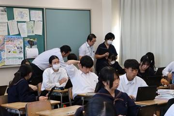 学校評議員の方々に、学校から、鹿島高校・附属中学校の現状と課題について報告し、ご意見をいただきました。会議のなかで、高校と中学の授業も見学していただきました。
