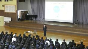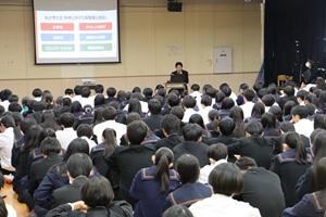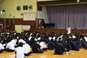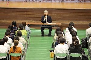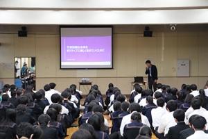 講師 吉田 亨 様をお招きしてお話いただきました(対象は高1・2年次、中2・3学年全員)。