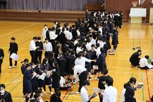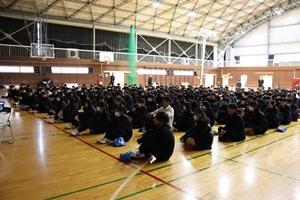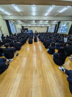 20251024 12月に予定されている第2年次の修学旅行に向けて、さまざまな事前準備・事前学習が計画されていますが、その一環として、本日第6時限に映像等視聴による平和学習が体育館にて行われました。