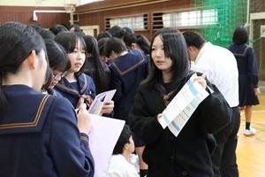 20251024 5時限目に、本校体育館にて、テックコンテスト(アイデア部門)プレゼン共有会を行いました。