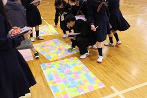 発表のよかったところをふせんに書き、クラスごとに模造紙に貼りました。