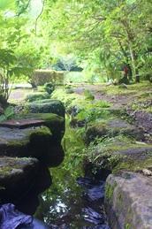 20251110 3Dプリンタで作成したランプシェードを夕方、中庭の日本庭園で灯してみました。この作品は先日、3年次「美術Ⅲ」選択者9名が、DXハイスクール・ゲストティーチャーの「デジタルものづくり」の授業で作成したものです。