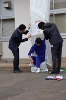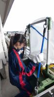 今回は本館(第1棟)3階3-3教室のベランダに設置されている「救助袋」を使用しました。