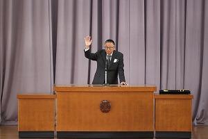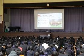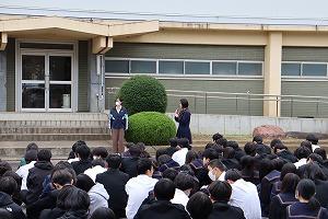 ボランティア活動とは何か、また、高校生が学校の枠を超え、地域課題に取り組むプロジェクトの紹介など、映像を活用して講演をいただきました。講演終了後、代表生徒がお礼の言葉を述べました。