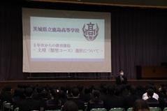 鹿嶋市の現状や課題点、今後について、また、高校生に期待することを講演していただきました。
