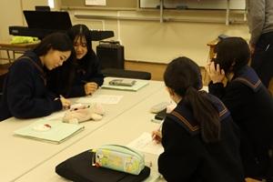 家庭科の授業において、体験学習が行われました。NPO法人わくわくネット65様のご協力のもと、赤ちゃんとそのお母さんが来校してくださり、講話と触れ合い体験を行いました。生徒たちは最初のうちは緊張していましたが、子育てについてのお話を聞き、抱っこの体験になったあたりでは楽しそうにしていました。