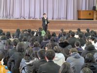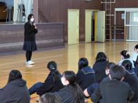 20251112 第6時限に、本校体育館において、小山記念病院より助産師の 後藤 愛子 様をお招きして、「性に関する講話」を実施しました。