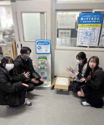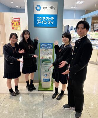 20251218 「アイシティecoプロジェクト」で、これまで学校内で回収したコンタクトレンズの空ケースを、アイシティ鹿嶋チェリオ店まで、生徒会役員が届けてきました。