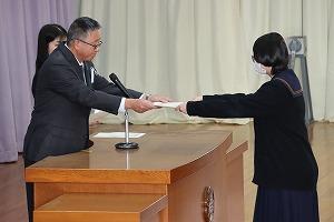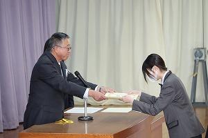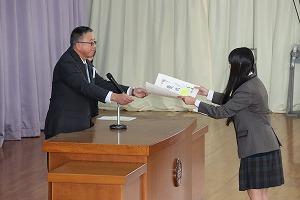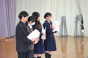 Following the send-off, Second Year student Honoka Kikuta gave a final report of the activities of Project K, which looked into the feasibility of using the KHS gymnasium as an evacuation and shelter during emergencies.
