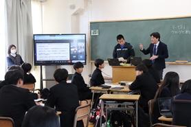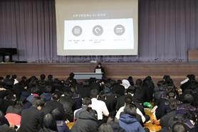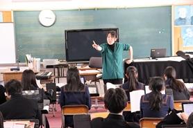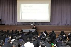 ボランティア活動に参加する意義、また、高校生が学校の枠をこえて、地域課題に取り組むプロジェクトの紹介など、映像を活用して講演をいただきました。また、来年度の探究に向けての話もいただきました。その後、質疑応答を実施しました。