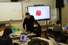 参加生徒は、3D CADの使い方を指導者の 三枝 勲 氏 より教わりながら、家の3D モデリングを行いました。