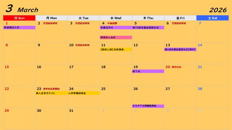 20260213 令和8年度新入生関連の予定は、現時点で以下のとおりとなります。