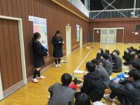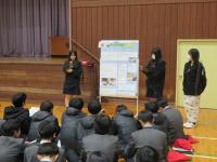体育館にて全グループがプレゼンテーションを行った後、2グループが代表としてステージ発表を行いました。