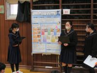 3年生が4月から進めてきた探究の成果を、2コースの2年次生、附属中の全生徒(1~3年生)に発表しました。